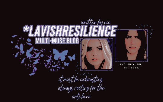 . RULE ONE . i am a 21+ writer. please do not ask to write if you are not 21+, thank you! while yes, i do have rules, i am a friendly writer regardless and you are more than welcomed to reach out to me to write if you would like to do so! i do have multiple muses listed with the possibility of always adding more whenever the muse hits. so please feel free to check out the list before letting me know what characters/fandoms you’re looking to write with! <3. RULE TWO . do NOT push me for replies. as i do have a life outside of tumblr and writing. i only use writing as a fun hobby for me and will more than likely block and drop our thread entirely if you are nonstop pushing for replies. if i’ll be away for a long amount of time i’ll be sure to message the partners that i am writing with!. RULE THREE . there are a few fandoms that i am unfamilar with, but i do not mind crossing my fandoms over into yours if we don’t have muses that are within the same fandoms as the ones that i currently am writing within. my blog is somewhat selective and for mutuals only. i don’t mind which fandoms you’re from, i mostly follow back everyone as long as you are 21+. there are a few fandoms that i am not particularly a fan of, and i’ll be sure to let you know which ones those are if you ask, of course.. RULE FOUR . i am a very friendly writer and love to write! i take a lot of passion and work hard on my replies. and try to really grasp each character’s personality while making them my own at the same time. sometimes they can be quick replies or slower due to real life activities. i am around for a good majority of the day and am normally working on replies throughout when i’ve got the free time. right now, this blog is currently semi-active and will remain as such until further notice.. RULE FIVE . if you choose to unfollow me for any reason. inactivity, cleaning up your dash, moving accounts, whatever it is that you may chose to do, please softblock me instead so it makes it easier on the both of us when i go through to clean up my own dash as well.. RULE SIX . ships will only be based upon chemistry. i will not ship with ANYONE that i don’t feel comfortable with and also do not feel that our characters have the chemistry to be doing so. please, do not force a particular ship unless we have a planned plot and talked about a storyline leading up to the ships development along the way. while i do have multiple muses here as well as a main blog that i spend majority of my time on replies on here may be quite slow and i’ll be keeping this blog semi-active depending on how many threads and SLs i’ve currently got going on here!keep in mind that this blog is anti j plec, anti s meyer.